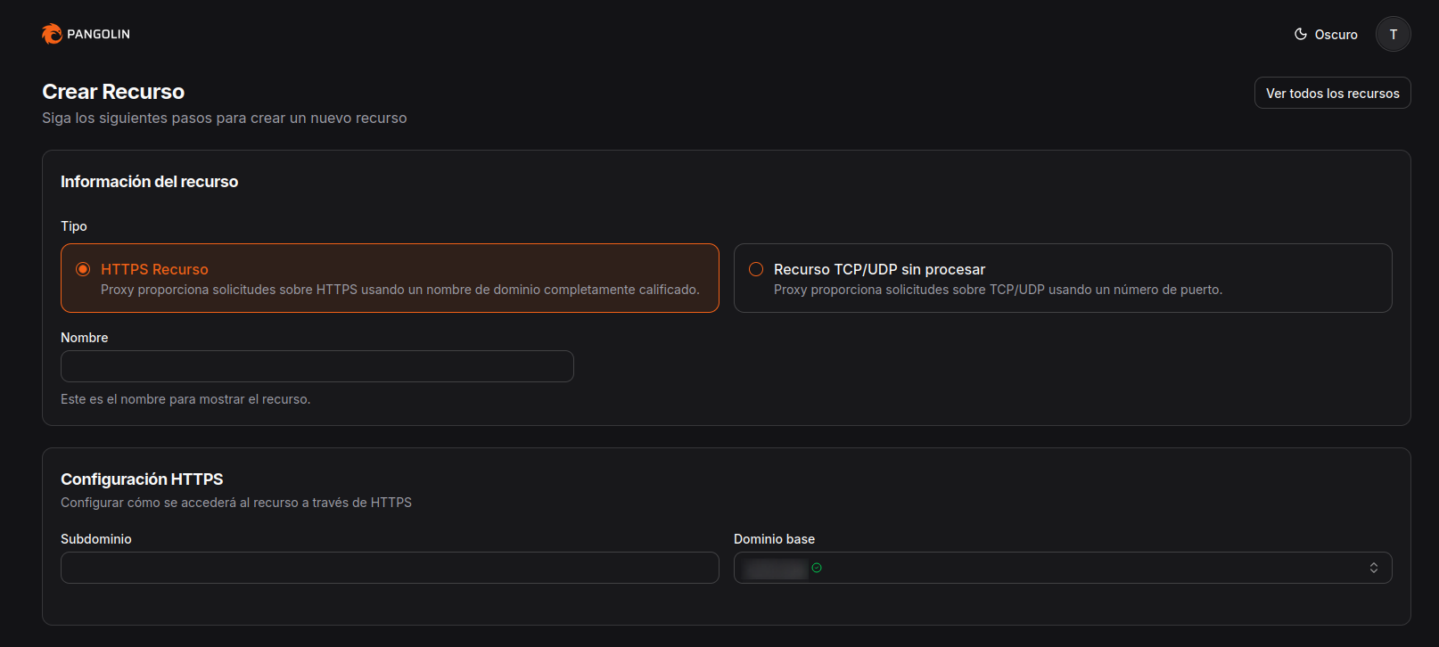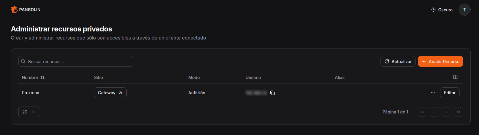 Vamos a la interfaz de Pangolin y nos vamos a Recursos - Público y hacmeos clic en añadir recurso nuevo.