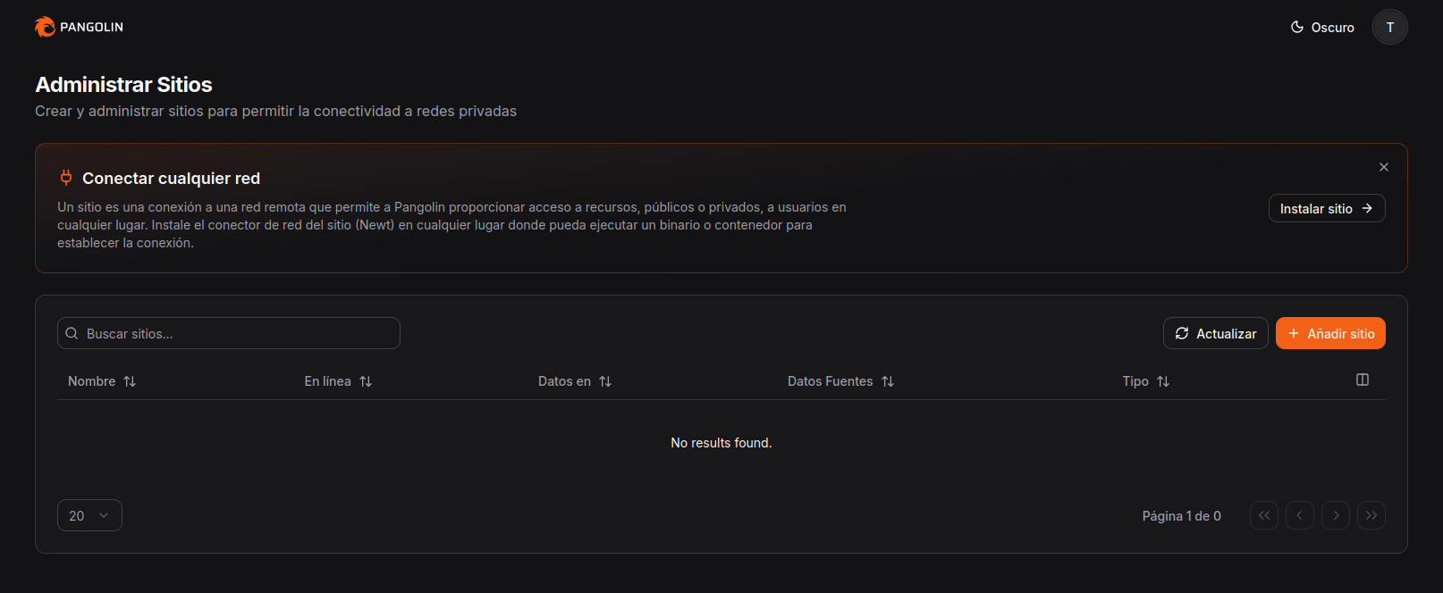 Antes de entrar en la configuración, conviene entender cómo organiza Pangolin el acceso a los servicios. Pangolin trabaja con el concepto de sitio, que representa una ubicación o entorno desde el que se publican servicios, como puede ser tu homelab, una red local o un servidor en casa. A partir de ese sitio se definen los recursos, que no son más que los servicios concretos que quieres exponer: un panel web, una aplicación interna o cualquier servicio que escuche en un puerto específico.