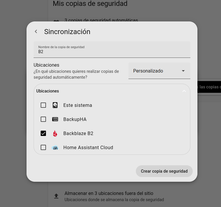 Con esto, la integración de Backblaze ya queda correctamente configurada en Home Assistant. A partir de ahora, el sistema podrá utilizar Backblaze como destino para las copias de seguridad, garantizando que tus backups se almacenen de forma segura y externa a tu instalación local.