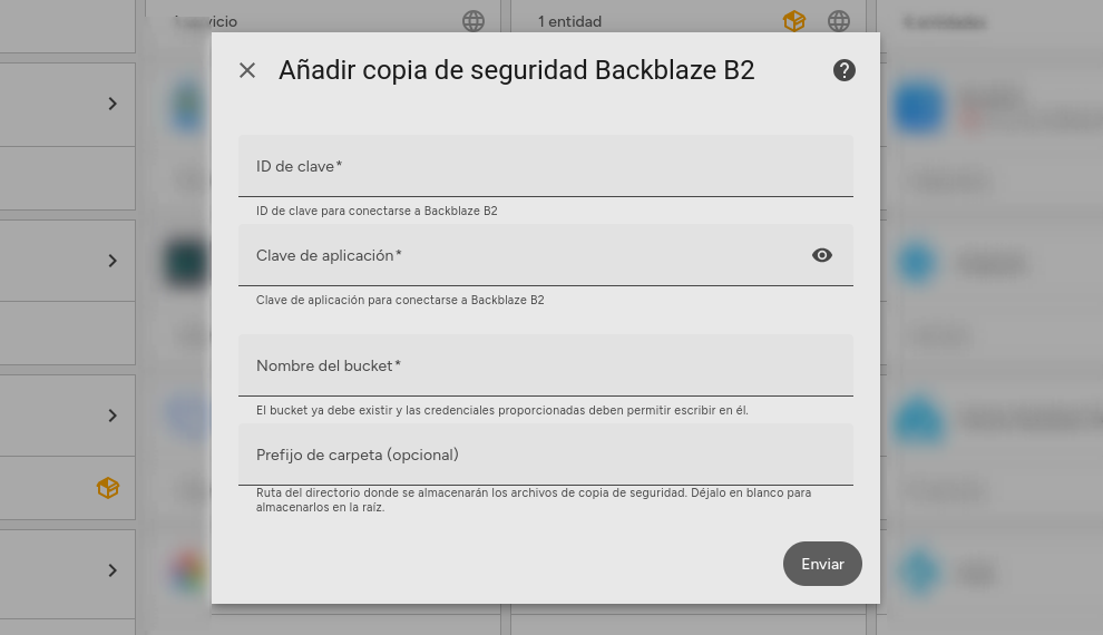 Una vez completados estos campos, Home Assistant ya tendrá toda la información necesaria para conectarse a Backblaze y empezar a gestionar las copias de seguridad en la nube.