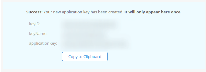 - ID de clave: introduce el Key ID que se mostró al crear la Application Key.