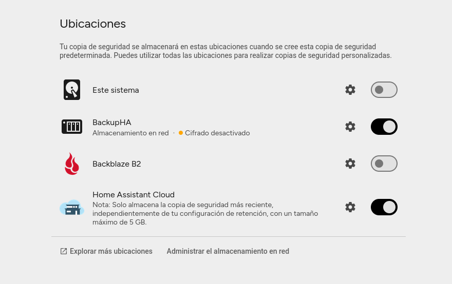 Lo activamos y, con ello, Backblaze quedará configurado como ubicación para las copias de seguridad. A partir de este momento, las copias de seguridad automáticas que tengas definidos se subirán directamente a Backblaze, sin necesidad de realizar ninguna acción manual, asegurando así una copia externa y fiable de tu Home Assistant.