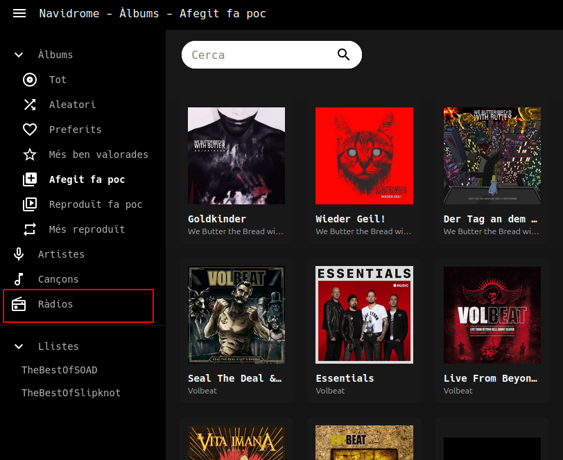 Accedemos a nuestra instancia de Navidrome con nuestro usuario y en el menú lateral buscamos la opción de Radio.
