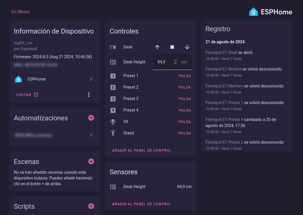 ¿Te ha llamado la atención el título? ¡Perfecto! Porque en este tutorial vamos a hacer precisamente eso: convertir una mesa regulable de Flexispot en una mesa inteligente, capaz de gestionar automatizaciones de manera eficiente. Prepárate para transformar tu espacio de trabajo en algo mucho más avanzado y funcional.