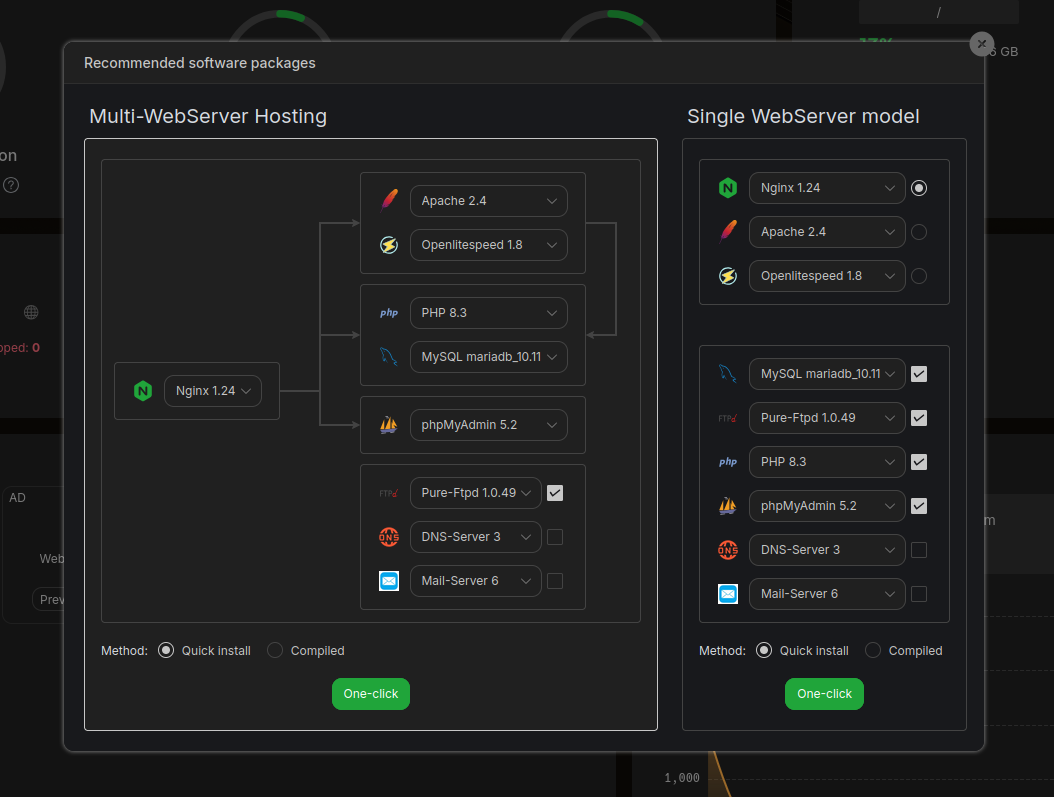 Una vez hemos iniciado, tendremos que seleccionar entre un LAMP o un LEMP: