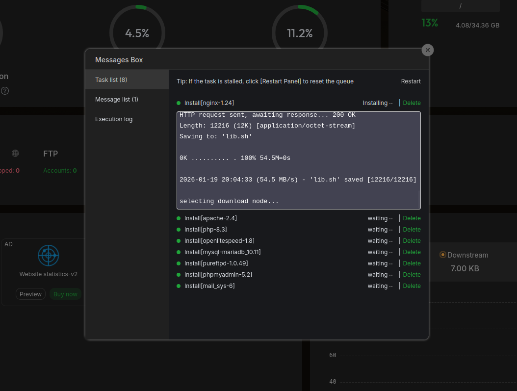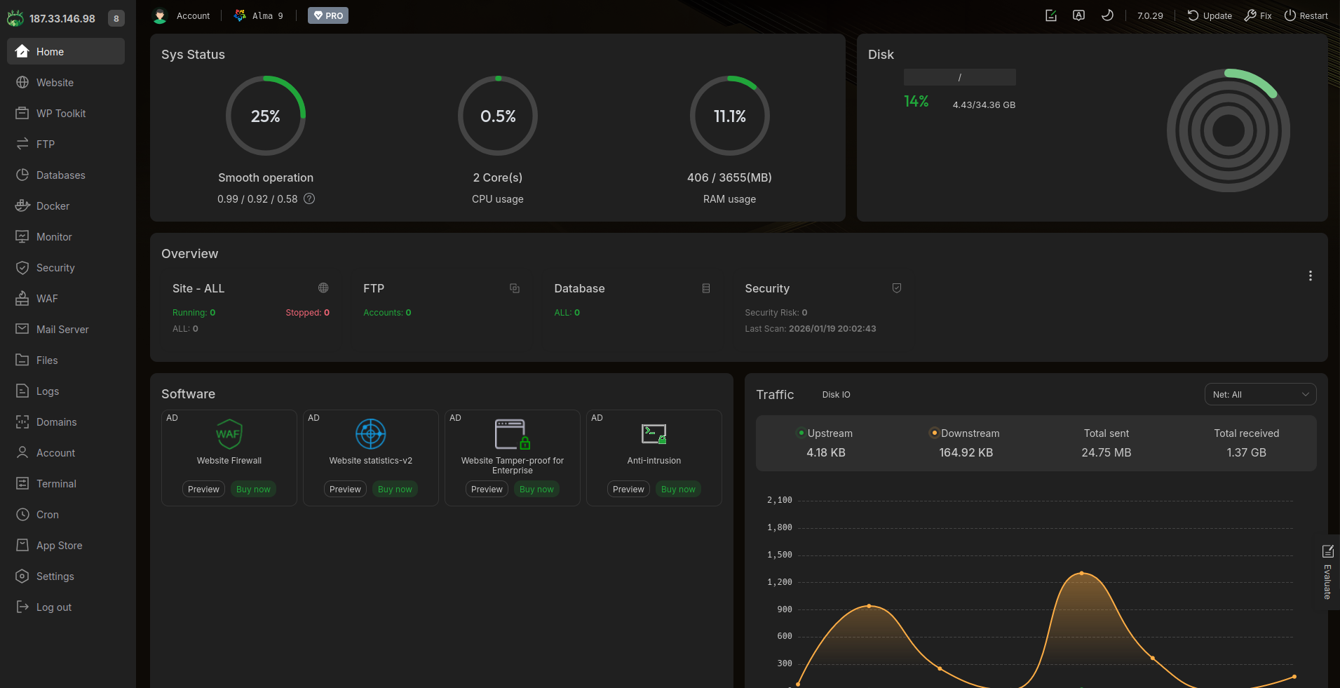 aaPanel es un panel de control gratuito y de código abierto diseñado para facilitar la administración de servidores web en sistemas GNU/Linux. Su interfaz gráfica intuitiva permite a los usuarios gestionar sitios web, bases de datos, servicios de correo, cortafuegos y mucho más, sin necesidad de usar la terminal constantemente.