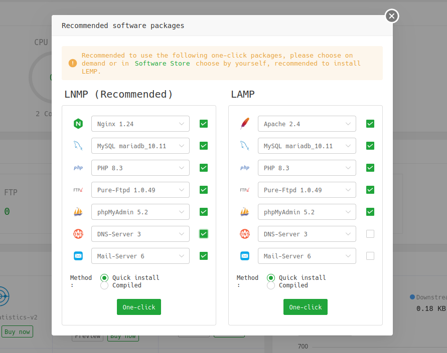 Una vez hemos iniciado, tendremos que seleccionar entre un LAMP o un LEMP: