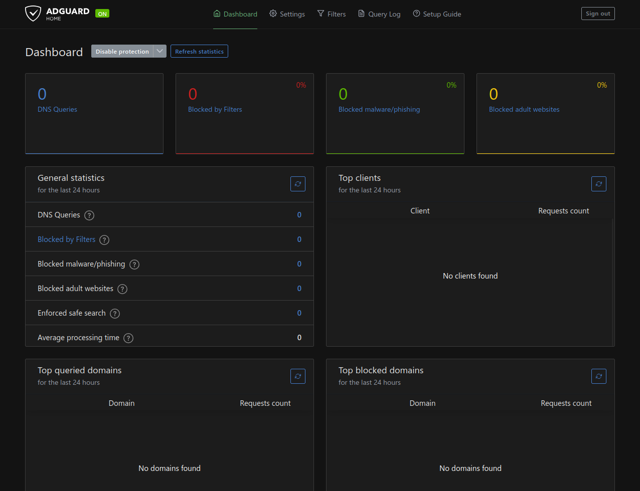Una vez iniciada la sesión, tendrás acceso completo a AdGuard Home y a todas sus secciones de configuración: DHCP, DNS, listas de bloqueo, filtros personalizados, estadísticas y mucho más.