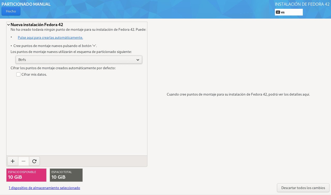 Hacemos clic "Pulse aquí para crearlas automáticamente" para generar las particiones básicas.
