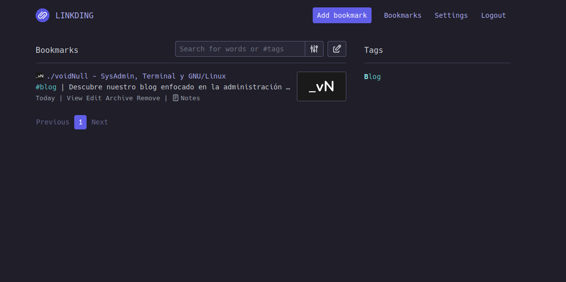 Linkding es una aplicación web de código abierto diseñada para gestionar marcadores (bookmarks) de forma sencilla, rápida y privada. Es una alternativa moderna y autoalojable a servicios como Pocket, Pinboard o Raindrop.io, pensada especialmente para personas que quieren mantener el control sobre sus datos.