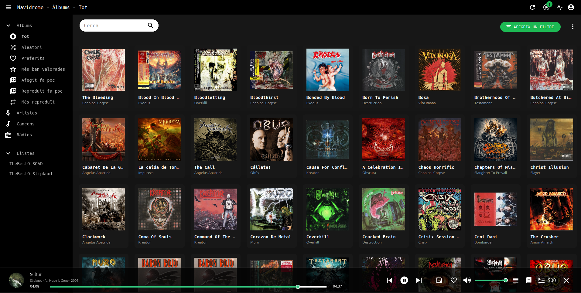Scanner.PurgeMissing = "always"¡Y listo! Ya se puede cargar contenido en el directorio correspondiente y ya tenemos Navidrome disponible para escuchar música en local.