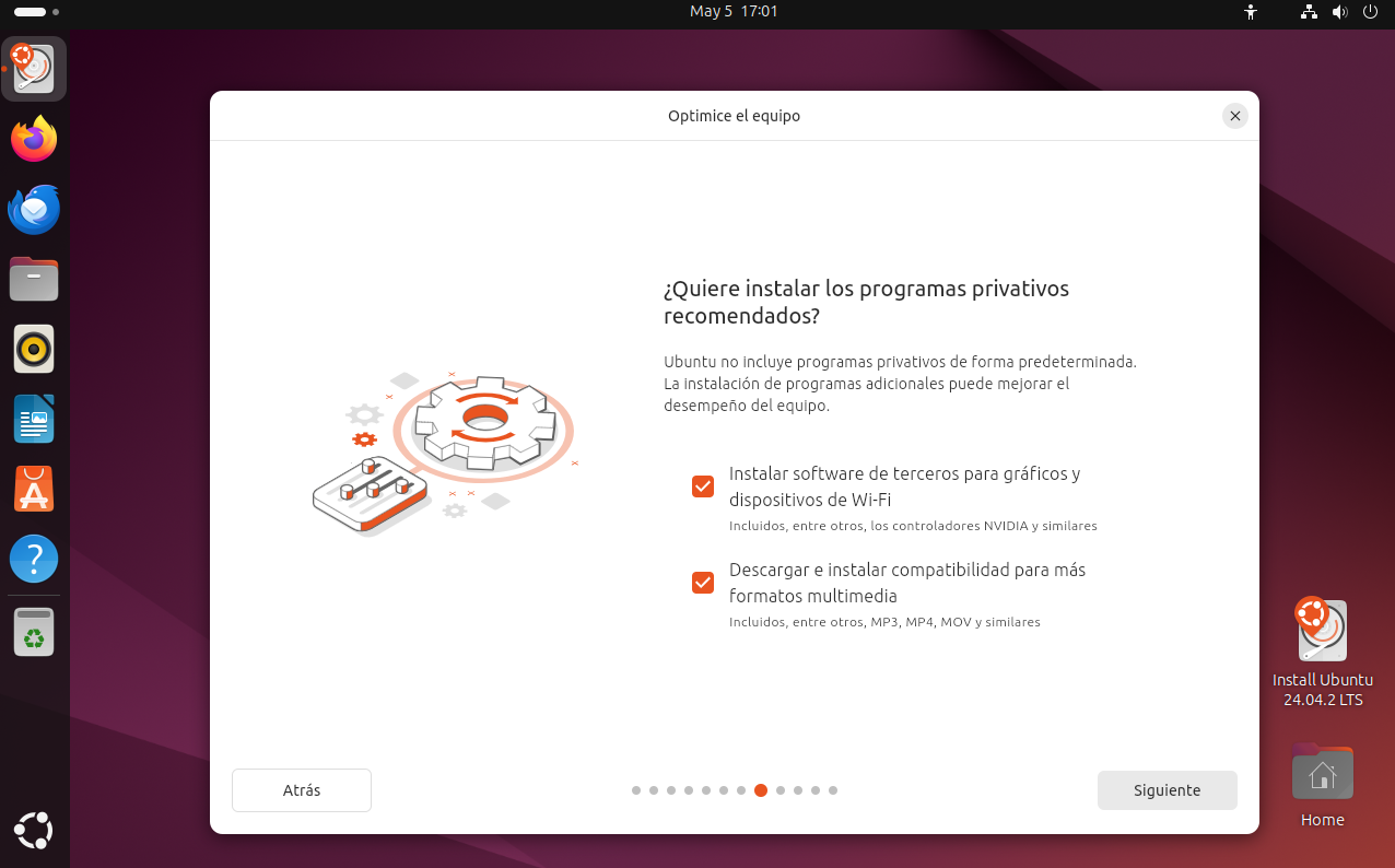 Para una mejor experiencia desde el inicio, recomiendo activar ambas opciones, especialmente si vas a utilizar Ubuntu en un equipo de uso general.