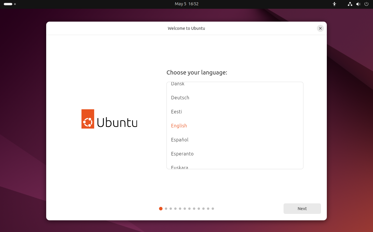 Al comenzar, lo primero que verás será una pantalla para seleccionar el idioma. Puedes elegir “Español” si es tu lengua materna, o cualquier otro idioma con el que te sientas más cómodo. Esta selección se aplicará tanto a la interfaz del sistema en modo live como al proceso de instalación.