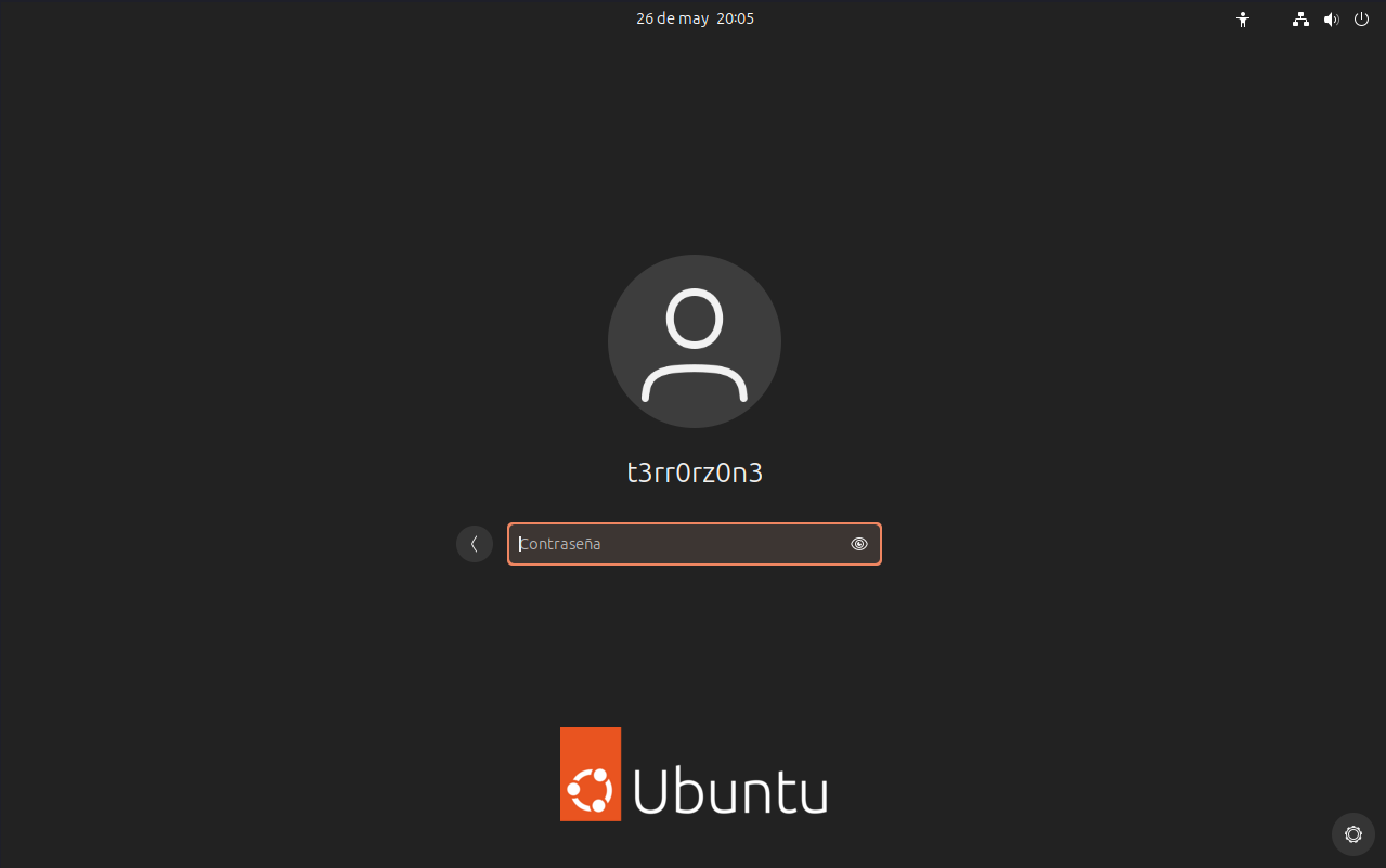 Una vez reiniciemos el ordenador, se iniciará Ubuntu y veremos la pantalla de inicio de sesión. Solo tendremos que introducir la contraseña que configuramos durante la instalación para acceder al sistema.
