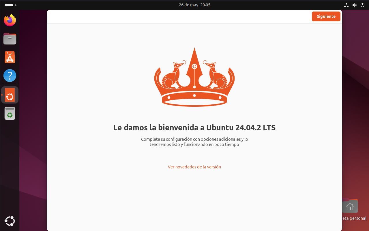 Al iniciar Ubuntu por primera vez, aparecerá un mensaje de bienvenida junto con algunos consejos útiles para terminar de configurar el sistema a tu gusto.