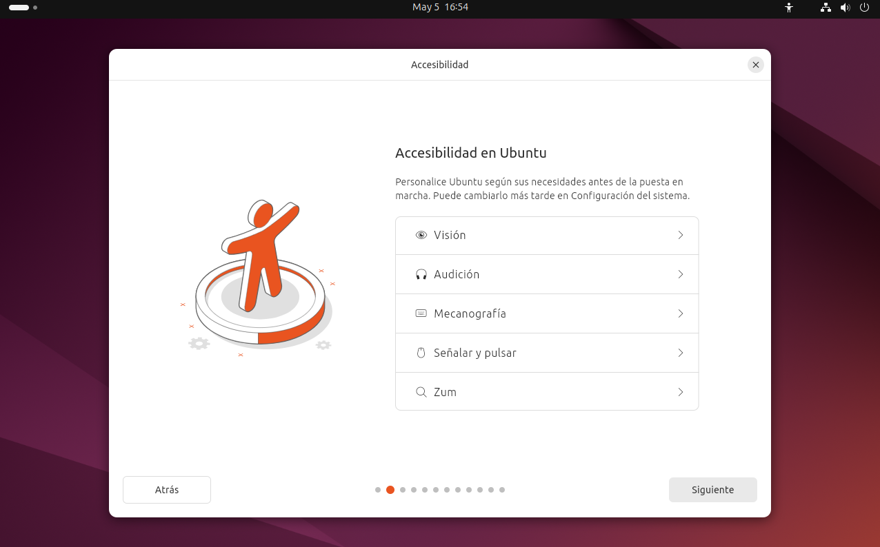 En esta pantalla también puedes acceder a las opciones de accesibilidad, en caso de que necesites asistencia adicional para utilizar el sistema. Por ejemplo, puedes habilitar soporte para lectores de pantalla, contraste alto, teclado en pantalla, entre otros ajustes diseñados para facilitar el uso del sistema a personas con distintas capacidades.