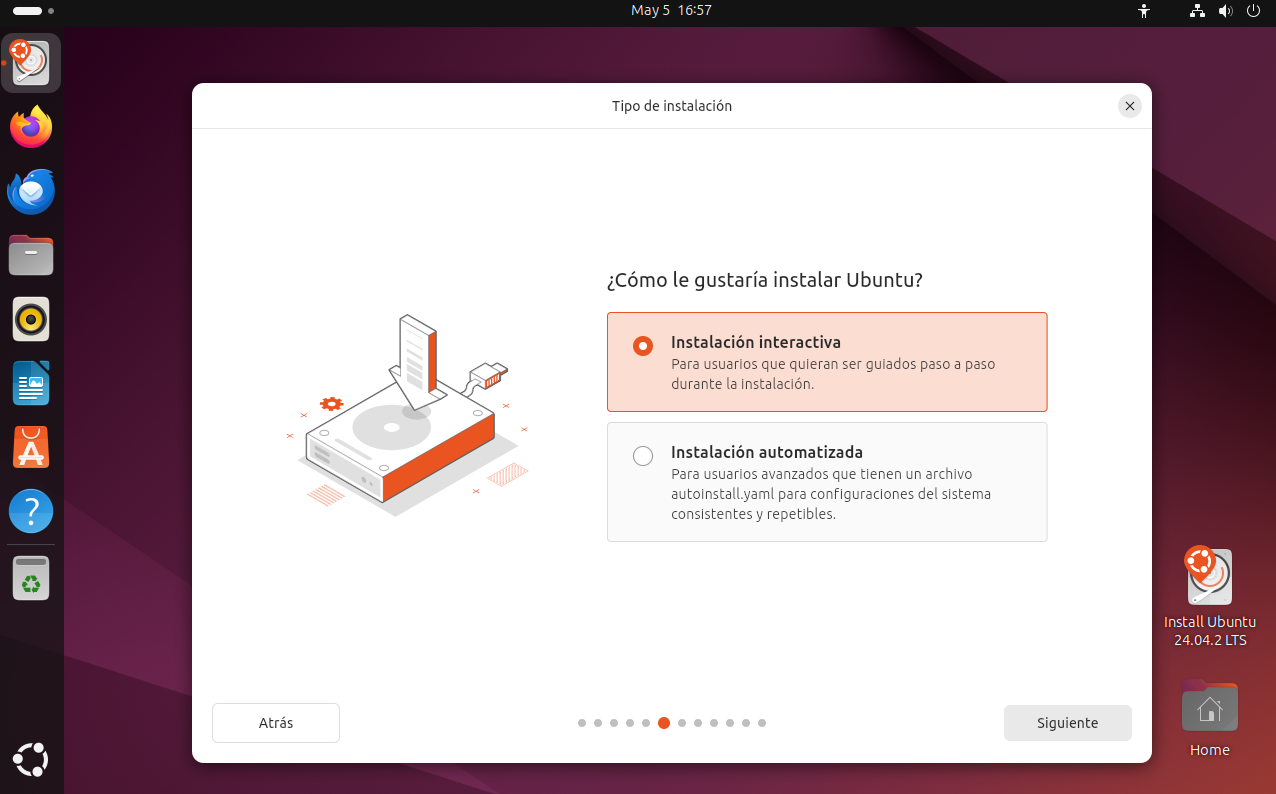- Instalación interactiva: pensada para usuarios que prefieren ser guiados paso a paso durante el proceso de instalación, con una interfaz gráfica amigable.