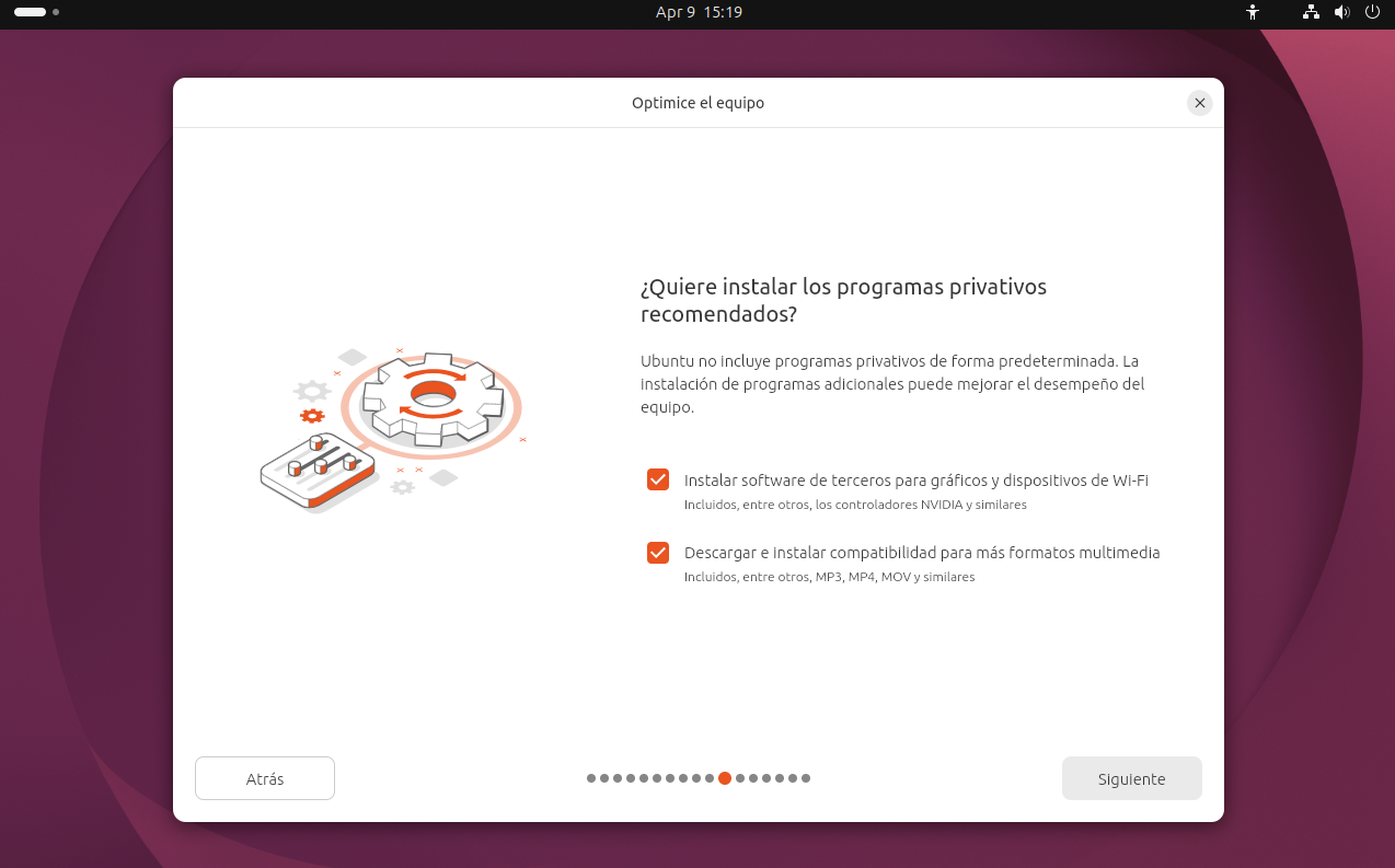 Para una mejor experiencia desde el inicio, recomiendo activar ambas opciones, especialmente si vas a utilizar Ubuntu en un equipo de uso general.