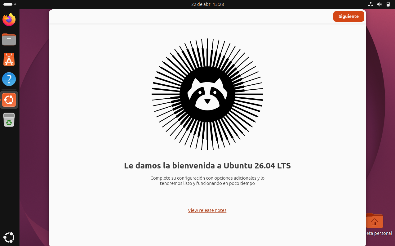 Al iniciar Ubuntu por primera vez, aparecerá un mensaje de bienvenida junto con algunos consejos útiles para terminar de configurar el sistema a tu gusto.