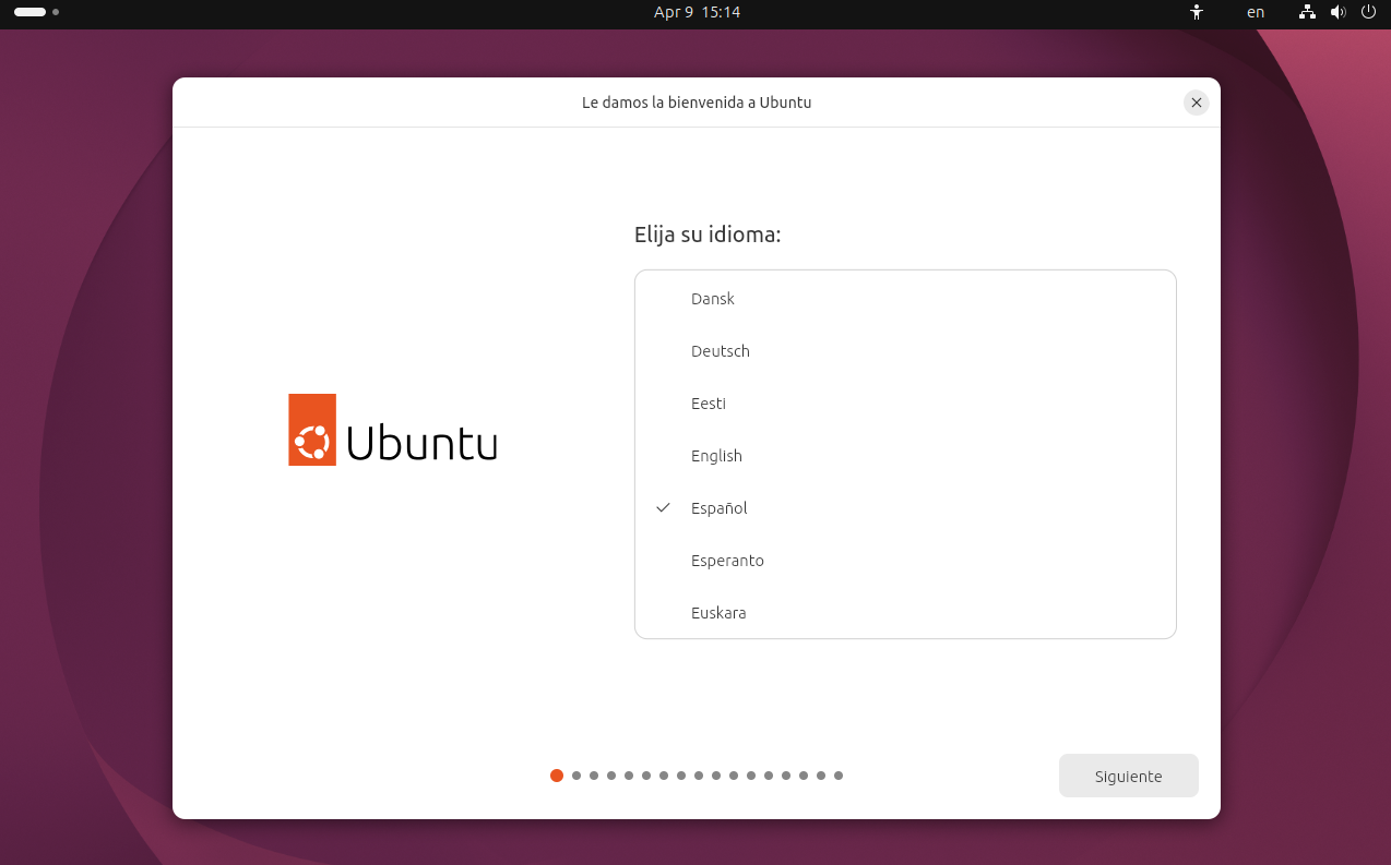 Al comenzar, lo primero que verás será una pantalla para seleccionar el idioma. Puedes elegir “Español” si es tu lengua materna, o cualquier otro idioma con el que te sientas más cómodo. Esta selección se aplicará tanto a la interfaz del sistema en modo live como al proceso de instalación.