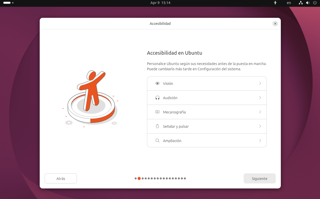 En esta pantalla también puedes acceder a las opciones de accesibilidad, en caso de que necesites asistencia adicional para utilizar el sistema. Por ejemplo, puedes habilitar soporte para lectores de pantalla, contraste alto, teclado en pantalla, entre otros ajustes diseñados para facilitar el uso del sistema a personas con distintas capacidades.