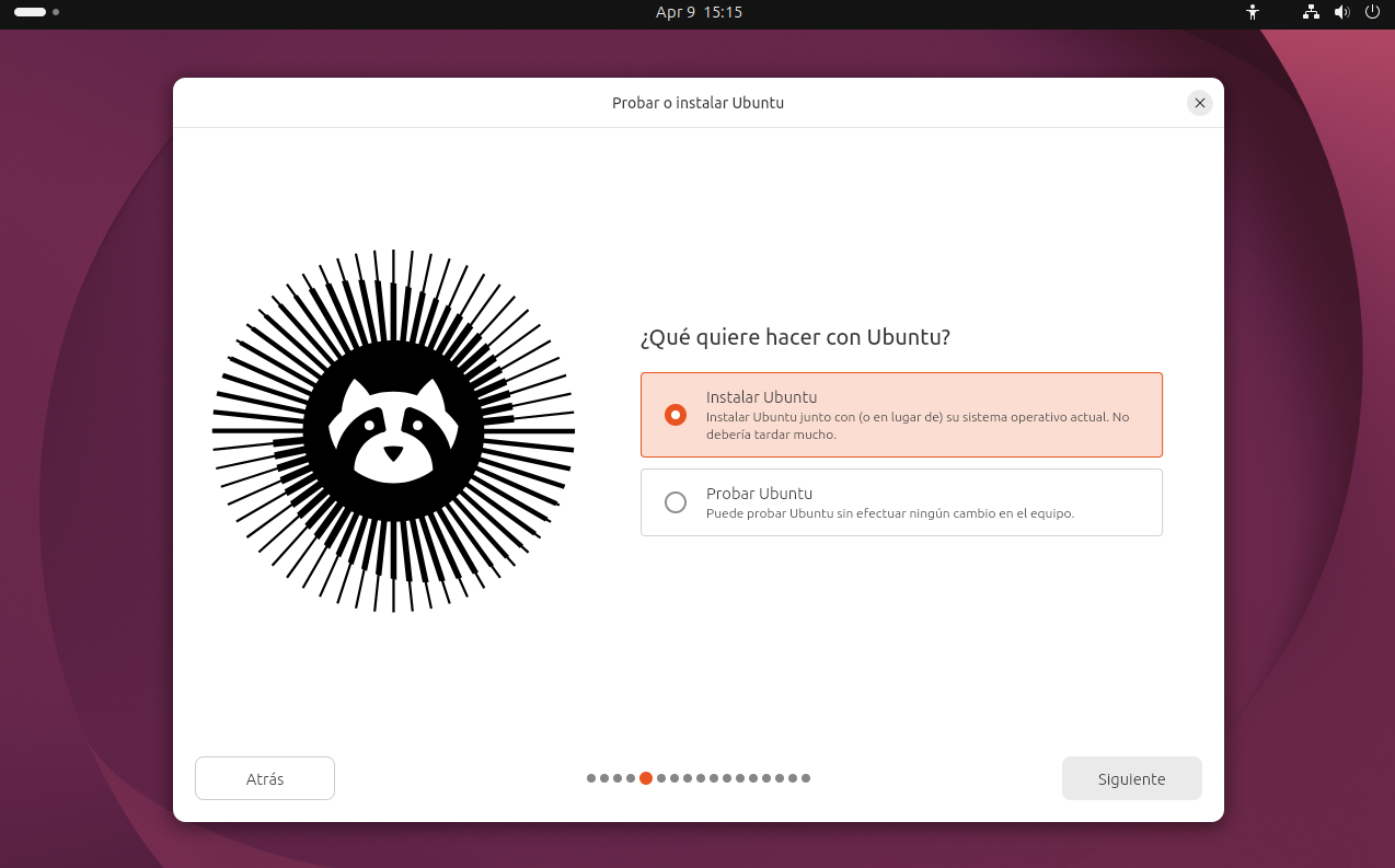 A continuación, el instalador te preguntará cómo deseas instalar Ubuntu. Verás dos opciones disponibles: