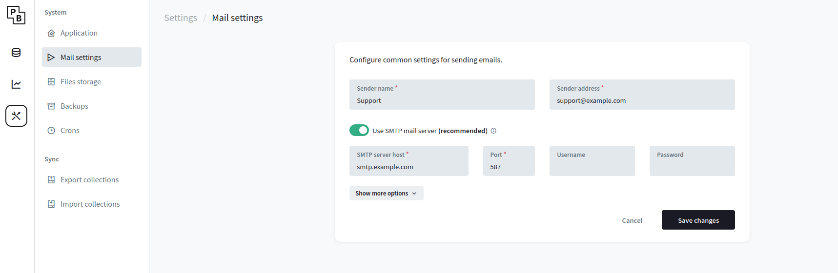 Una vez dentro, si navegamos a Settings > Mail Settings, podremos configurar el servidor SMTP, lo cual es necesario para que los nuevos usuarios puedan registrarse y recibir correos de verificación o recuperación de contraseña.