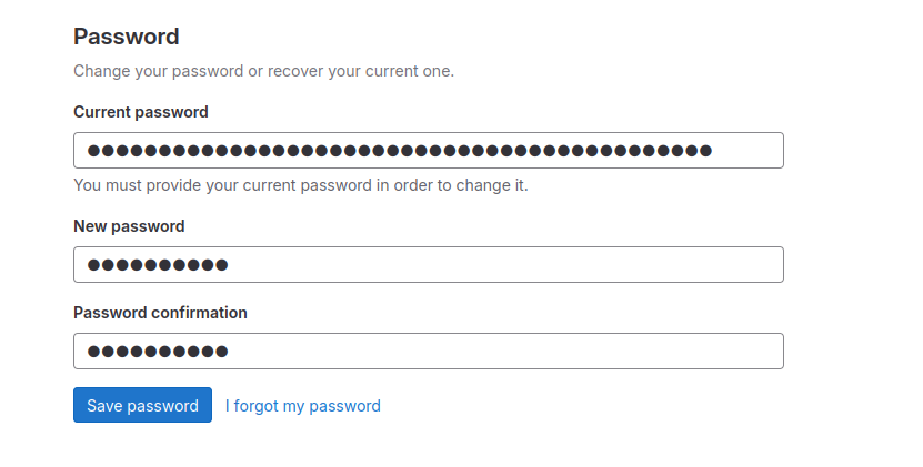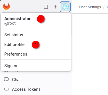 Para cambiar la contraseña de root, deberemos de ir al ícono de perfil y luego Edit profile y luego iremos a Password: