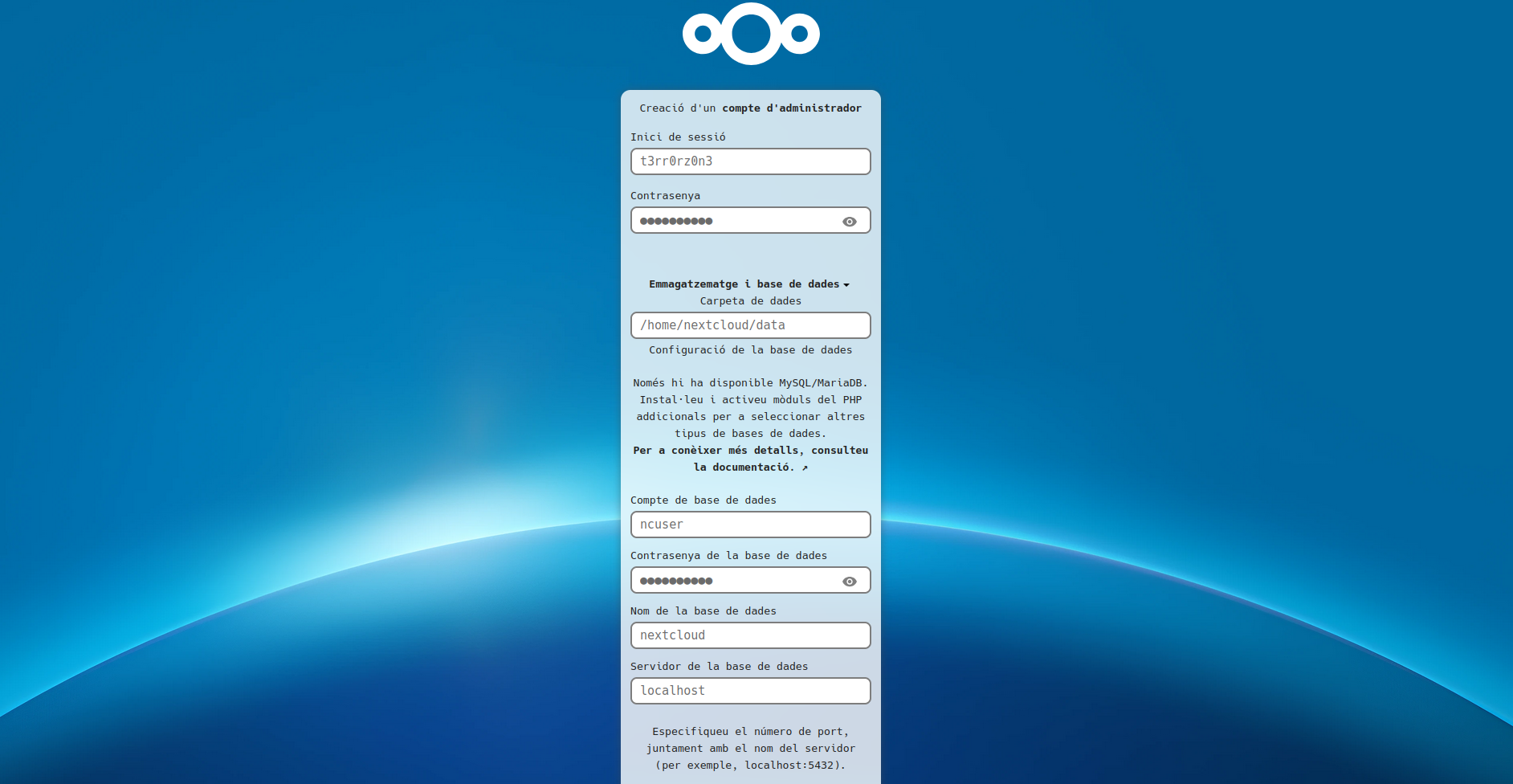 }nc.voidnull.es por tu dominio para que la configuración sea correcta.Instalación de NextCloud