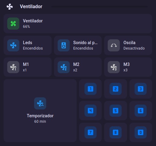 Ahora tendremos una nueva integración con un dispositivo que será nuestro ventilador y podremos configurarlo para crear lo siguiente en nuestro DashBoard: