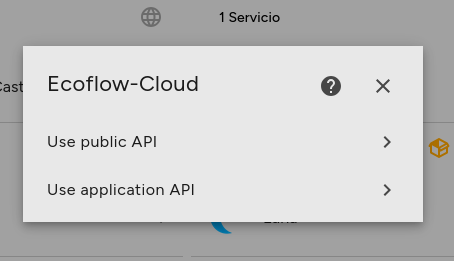 Nos ofrecerán dos opciones para utilizar el Cloud de EcoFlow. El que recomiendo para hacer este tutorial, es la opción de Use application API.
