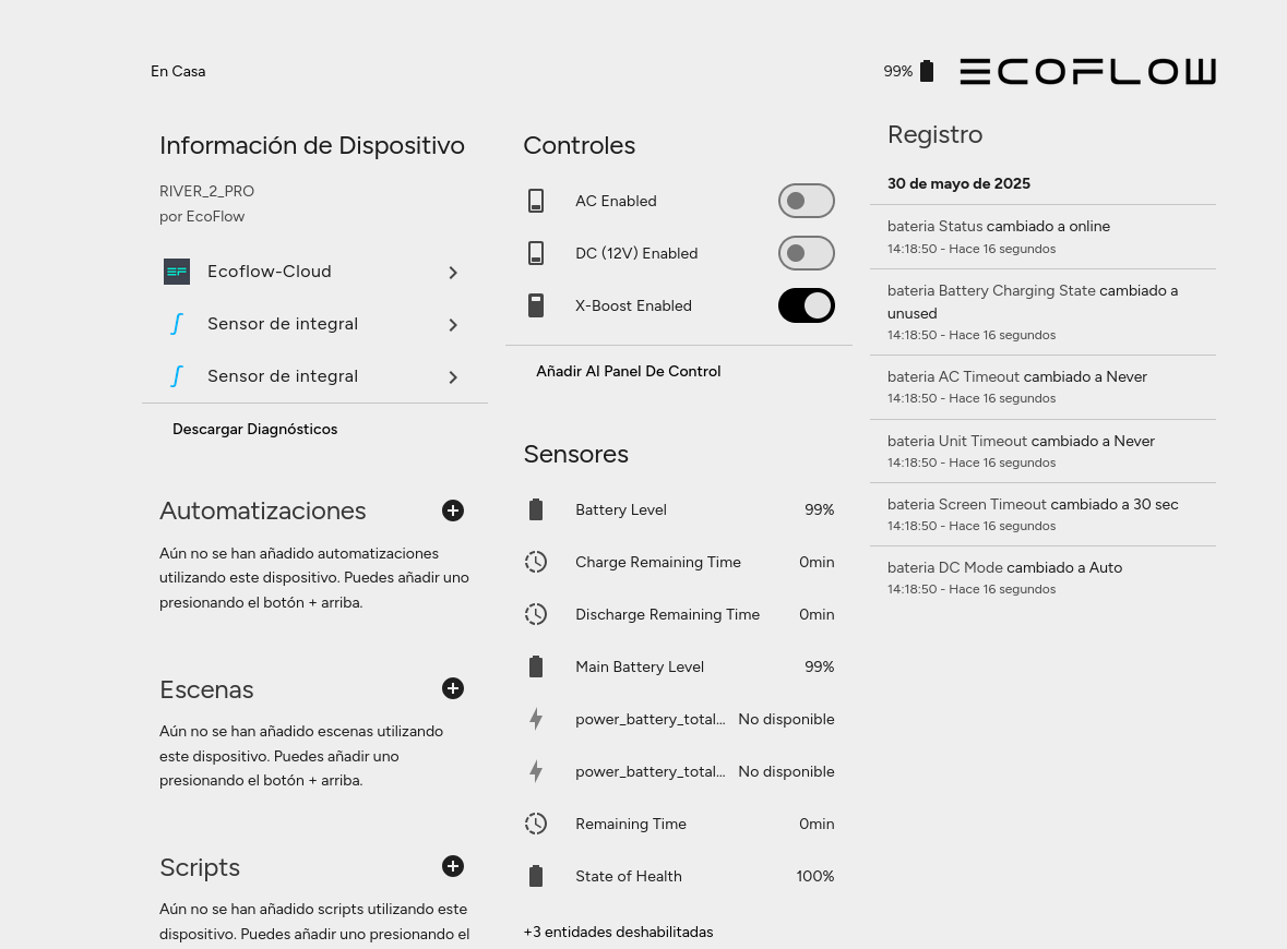 Si tienes una batería portátil EcoFlow como la Delta 2, River 2, o cualquier modelo compatible con la app de EcoFlow, puedes integrarla fácilmente en Home Assistant para monitorizar su estado, saber cuánta energía queda, cuánto está generando con placas solares o cuánta energía consume. En este artículo te explico cómo hacerlo paso a paso.