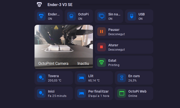 Y ya tenemos los controles y sensores de nuestra impresora 3D en nuestro Home Assistant: