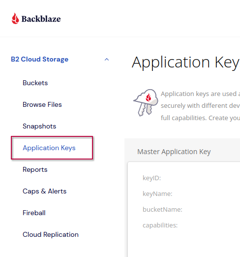 Necesitamos crear una Application Keys nueva para este proceso. Para crear una hacemos clic en la opción que tenemos en el menú lateral: