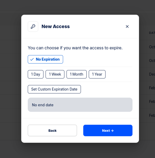 Si lo deseamos, podemos establecer una fecha de expiración; de lo contrario, dejamos seleccionada la opción No Expiration.