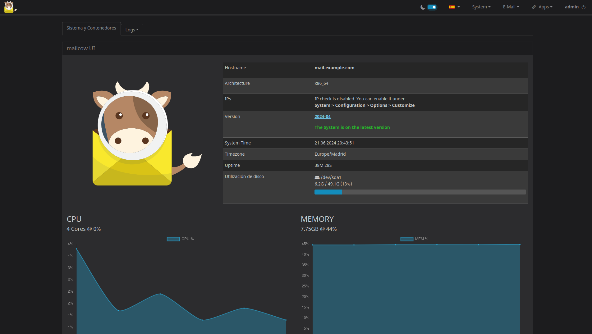 mailcow para ejecutar los contenedores de Docker.Instalación de MailCow
