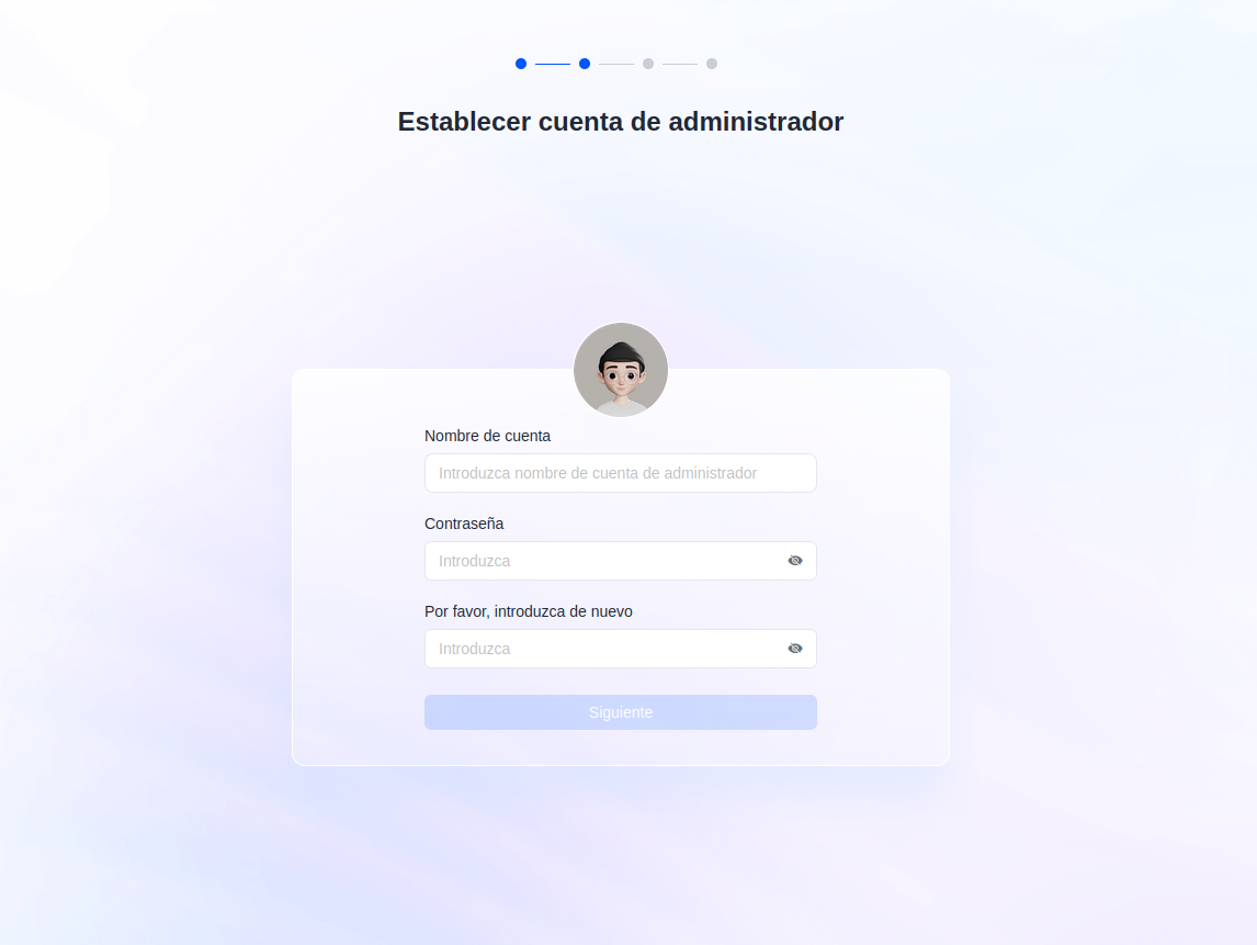Luego tendremos que crear un usuario administrador y configurar una contraseña robusta.