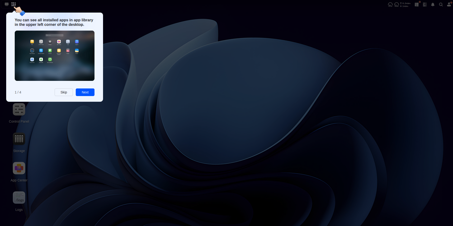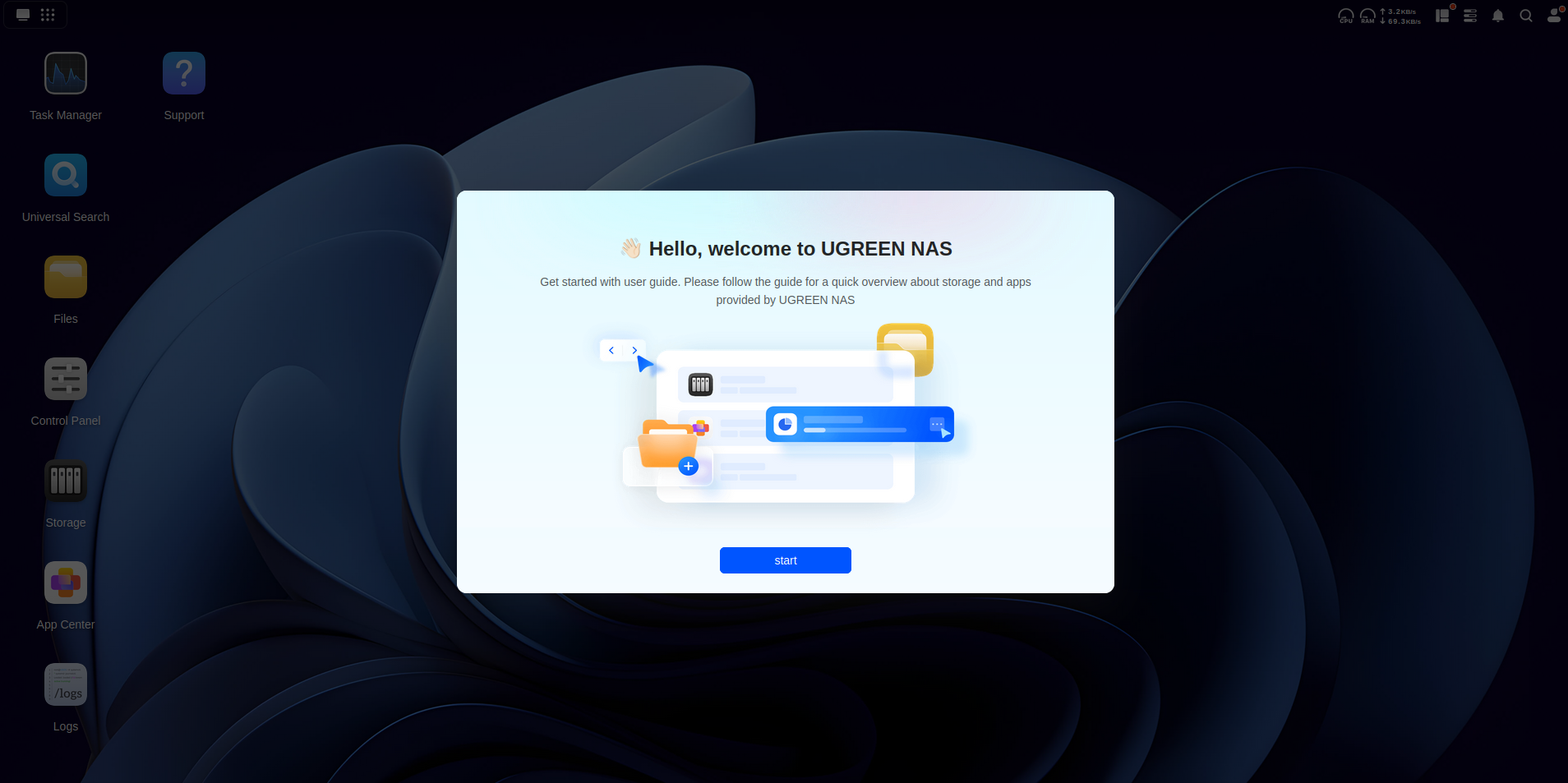 En la interfaz, tendremos un tour para aprender a utilizar la interfaz de UGOS.