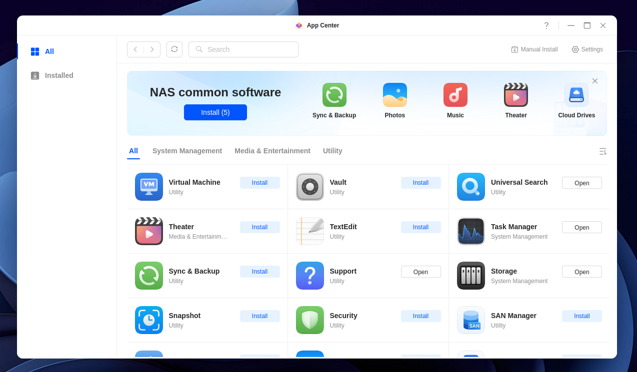 Si queremos instalar aplicaciones, tendremos que hacer clic sobre el ícono llamado App Center y se nos abrirá esta ventana para instalar lo que necesitemos: