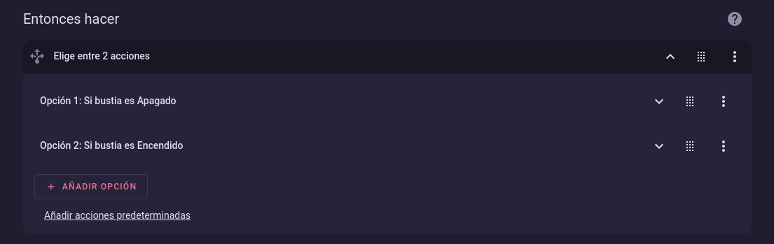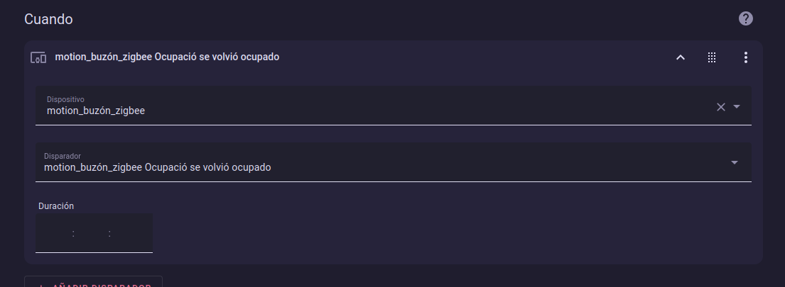 Nuestro objetivo es que, al detectar movimiento por primera vez, la automatización determine si hay una carta o no, según el estado del ayudante que hemos creado previamente. Este ayudante nos permitirá identificar el momento en el que abrimos el buzón para recoger las cartas.