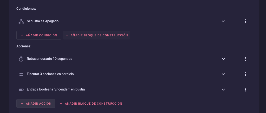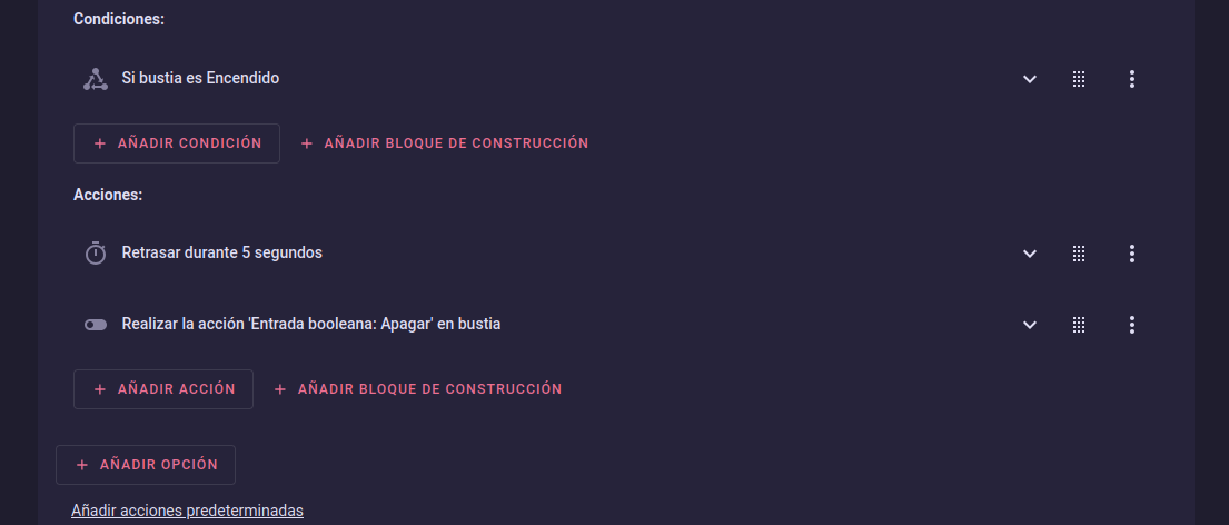 - Y la última acción es cambiar el estado de nuestro ayudante buzón a ON.