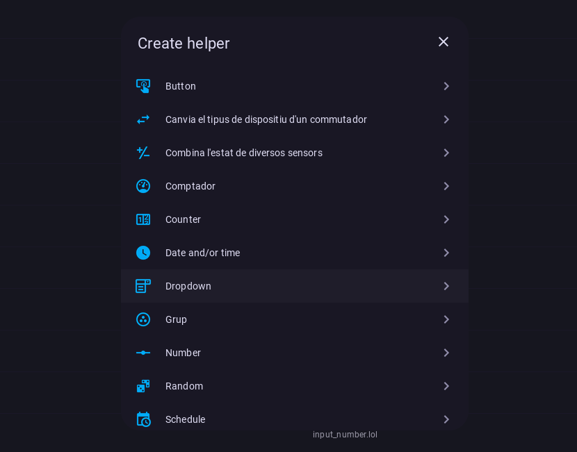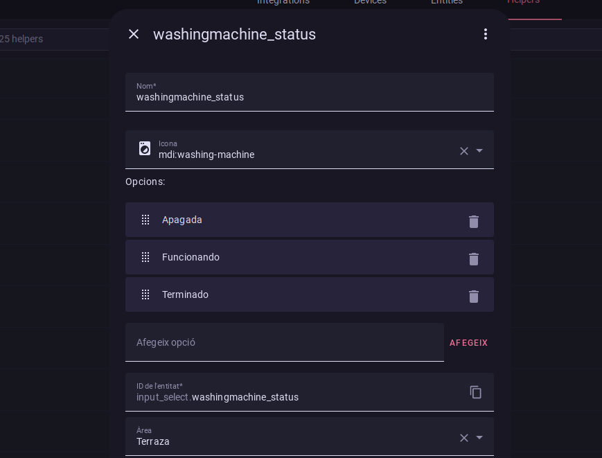 Seleccionamos la opción de Dropdown y le configuramos un nombre. El nombre de este Ayudante es importante, así que en mi caso he optado por washingmachine_status.