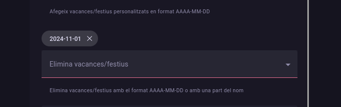 Dentro del apartado Añadir vacaciones/festivos tendremos que añadir la fecha en el siguiente formato AAAA-MM-DD. Por ejemplo, este artículo se está escribiendo el 22 de octubre del 2024, la fecha que hay que introducir es 2024-10-22.
