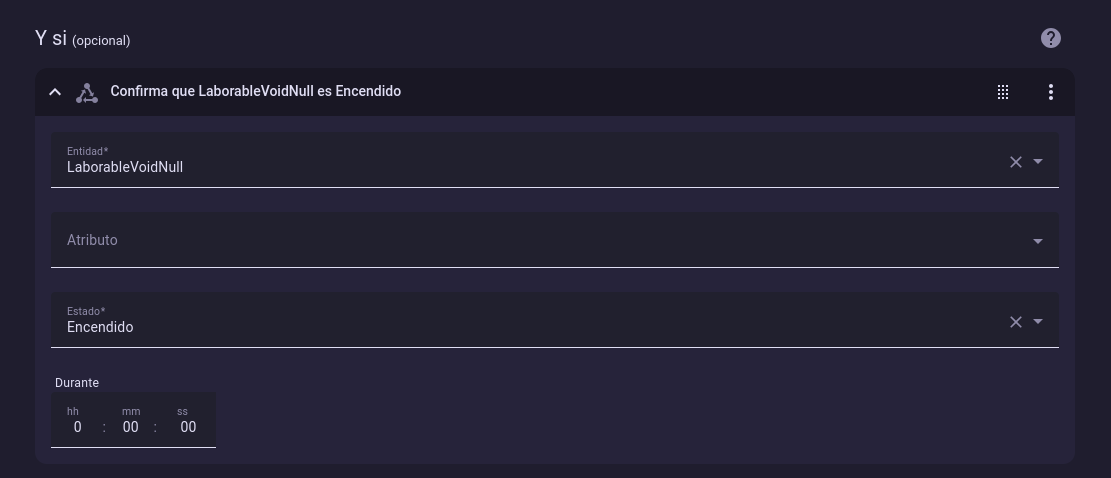 Con una condición clara, cuando la entidad del sensor que hemos creado esté encendido (que significa que es un día laborable):